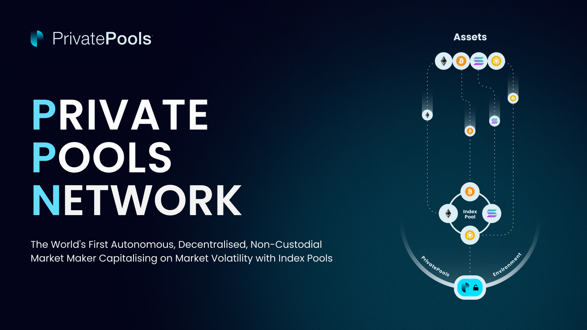 These Index funds "[Private Index Pools](https://docs.privatepools.network/overview/broken-reference)" (PIP's) are a novel approach to incentivising liquidity and extracting value from external liquidity sources. In short, Private Pools Network can be described the worlds first "Fully Automates, Decentralized, Non-custodial, On-chain Market Maker.&#x20;