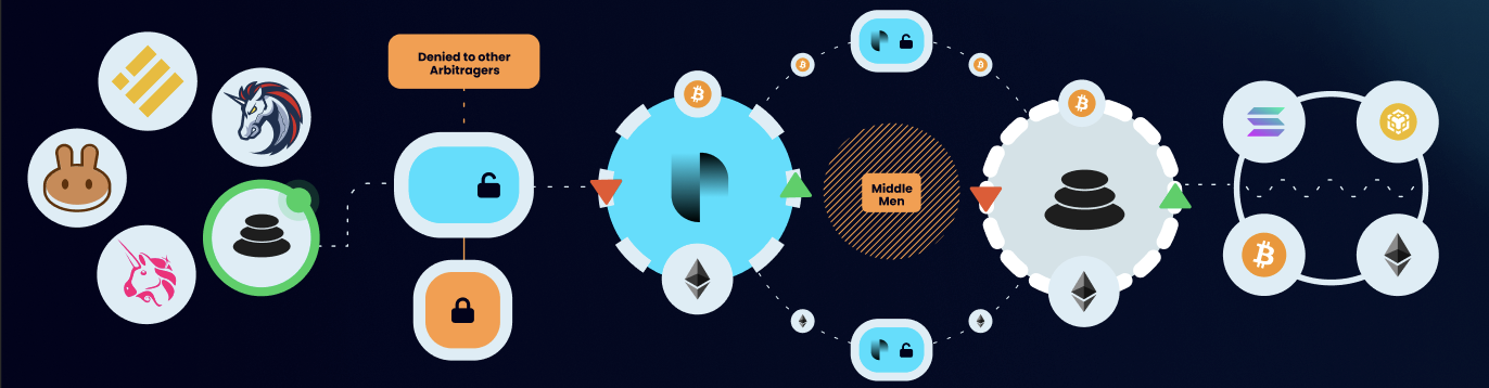 \- Optimize the arbitrage process by circumventing middle men (extracting up to 80% more value by avoiding[ PGA](https://docs.privatepools.network/overview/broken-reference)'s) \
